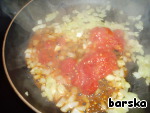 Добавить консервированные помидоры в собственном соку, протушить. -