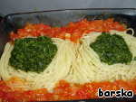 Форму для выпечки смазать маслом. Выложить спагетти в форме "гнёзд".