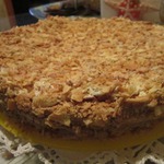 Обрезать, наколоть вилкой. Я брала донышко от разъемной формы диаметром 28 см. Выпечь при 200*С до золотистого цвета. Печется очень быстро, буквально 5-7 минут. Надо следить, чтобы не передержать. Снимать очень осторожно широким ножом, коржи очень хрупкие...