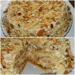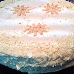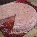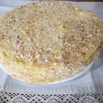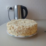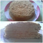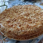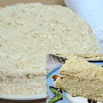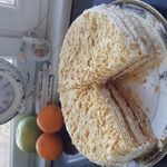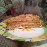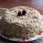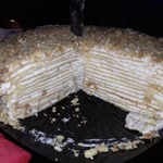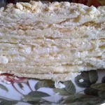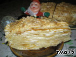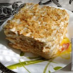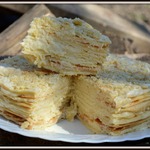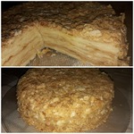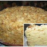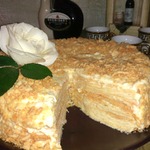 11 страниц, выданных мне сайтом по запросу "торт "Наполеон"", честно и очень внимательно изучены и теперь я с чистой и спокойной совестью могу разместить мой вариант. В качестве рекламы моего рецепта могу сказать следующее: когда муж моей подруги, капитан рыболовного судна, возвращался после 4 -6 месяцев отсутствия домой, он звонил из Норвегии или уже из Мурманска и просил меня испечь для него этот торт. И я пекла. Оля рассказывает, что огромный торт он съедал один, никому не давал ни кусочка... говорил: "Это МОЙ торт! Он ДЛЯ МЕНЯ сделан!" И все. Рецепт очень-очень старый, родом с Украины. Ингредиентов - самый минимум!!! Результат просто превосходный!