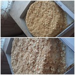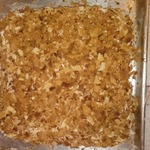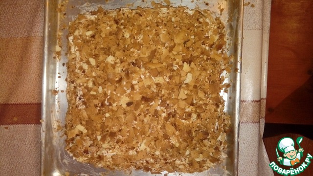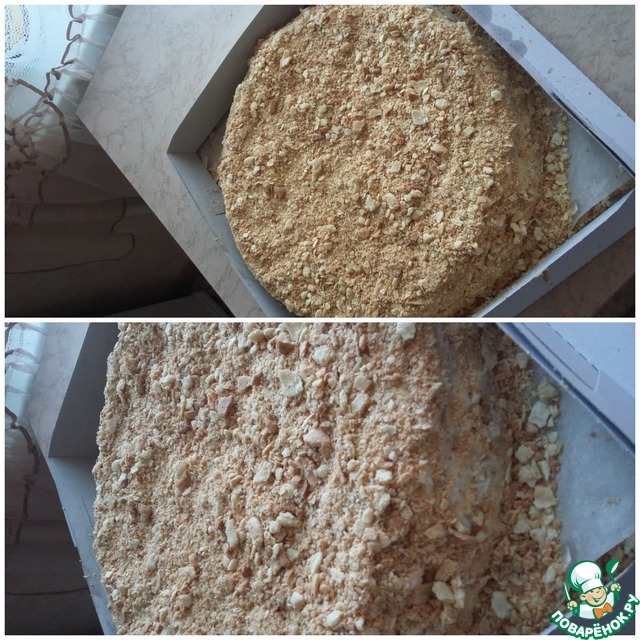 Обрезки раскидать на противень и запечь до светло-коричневого цвета. Когда обрезки остынут, истолочь их в крупную крошку. Я просто разминаю руками.