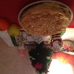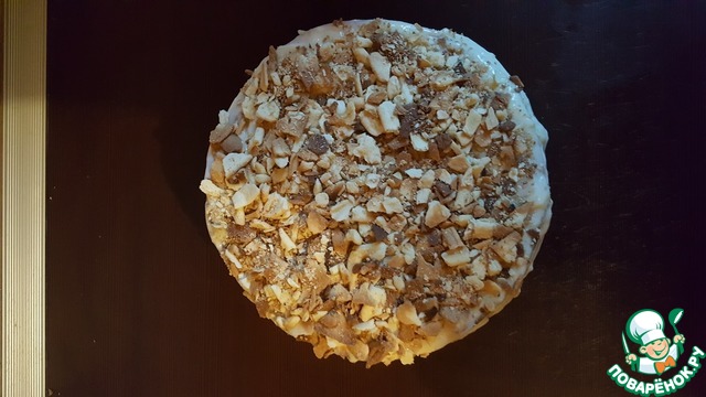 Вот так будет выглядеть наш тортик после промазывания коржей. Он немного осел.