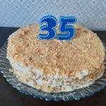 Ну, вот и все! Такой вот у меня "Наполеон". Мы очень любим этот торт, особенно муж. Все время просит меня его приготовить, но для семьи я готовлю его очень редко. Вот себе на 40-летие готовила, а потом мужу на 55-летие (а мы с ним с одного года)...