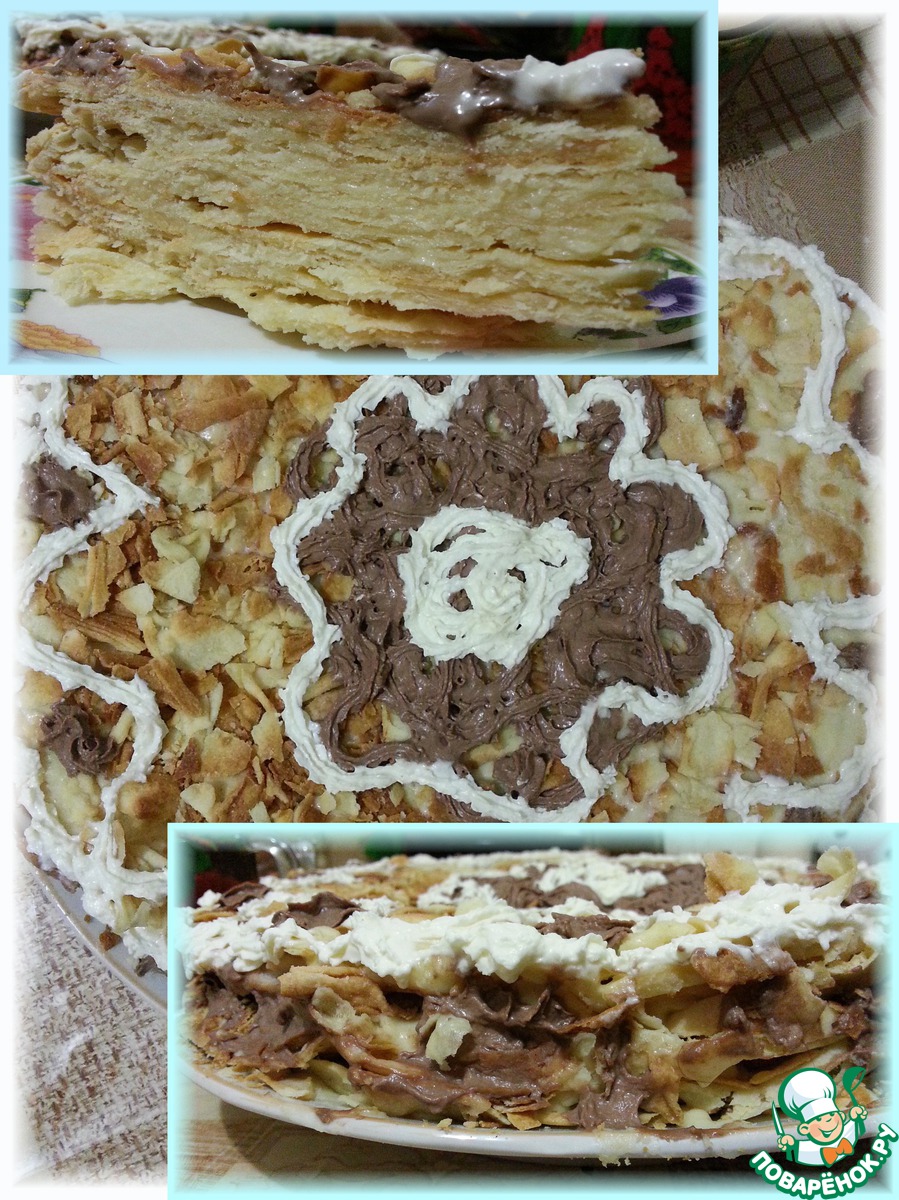 11 страниц, выданных мне сайтом по запросу "торт "Наполеон"", честно и очень внимательно изучены и теперь я с чистой и спокойной совестью могу разместить мой вариант. В качестве рекламы моего рецепта могу сказать следующее: когда муж моей подруги, капитан рыболовного судна, возвращался после 4 -6 месяцев отсутствия домой, он звонил из Норвегии или уже из Мурманска и просил меня испечь для него этот торт. И я пекла. Оля рассказывает, что огромный торт он съедал один, никому не давал ни кусочка... говорил: "Это МОЙ торт! Он ДЛЯ МЕНЯ сделан!" И все. Рецепт очень-очень старый, родом с Украины. Ингредиентов - самый минимум!!! Результат просто превосходный!