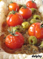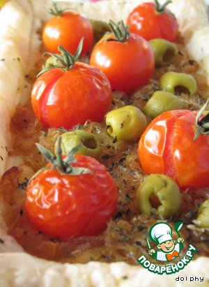 Рецепт «Тарт с карамелизованным луком и помидорами черри»:
