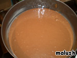 Теперь приготовим глазурь (для тех, кто не знает): сливочное масло, какао, сахар, молоко смешать, довести до кипения и варить на слабом огне, постоянно помешивая, минутку. -