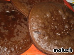 Полученное тесто можно разделить на три части и испечь три коржа, как сделала я. А можно выпечь один корж и разрезать на три части, только время выпекания увеличить.