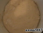 Добавить ванильный сахар, растопленное сливочное масло, 2 яйца, ароматизатор и 1 стакан муки. Замесить тесто.