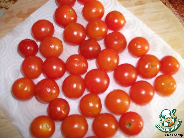 Выкладываем на сковородку масло с черри и обжариваем минуты 2 со всех сторон.