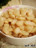 Стакан белой фасоли тщательно промыть, залить холодной водой и оставить на 5 - 6 часов, можно на ночь. Отварить до готовности. -