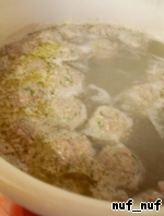 В кастрюлю с кипящей водой опустить фрикадельки. После закипания тщательно снять пенку и посолить по вкусу. Затем добавить картофель и варить ещё 5-7 минут. Наконец, пришла очередь обжаренных овощей и шампиньонов.
