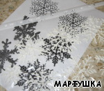1 белок взбиваем с 250 г сахарной пудры и по шаблону рисуем снежинки. -