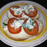 Режем батон. Желательно, его обжарить. Смазываем кусочки майонезом, чтобы пропитались. На каждый бутербродик режем помидор кружочками.