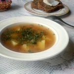 В готовый суп добавить мелко порезанную зелень петрушки и/или укропа. ГОТОВО!