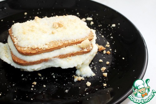 Верхний слой должен быть кремовым. Посыпать измельчённым печеньем и остудить. Поставить в холодильник на пропитку, лучше на ночь...