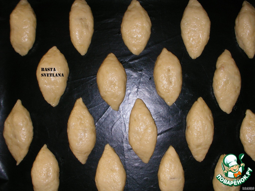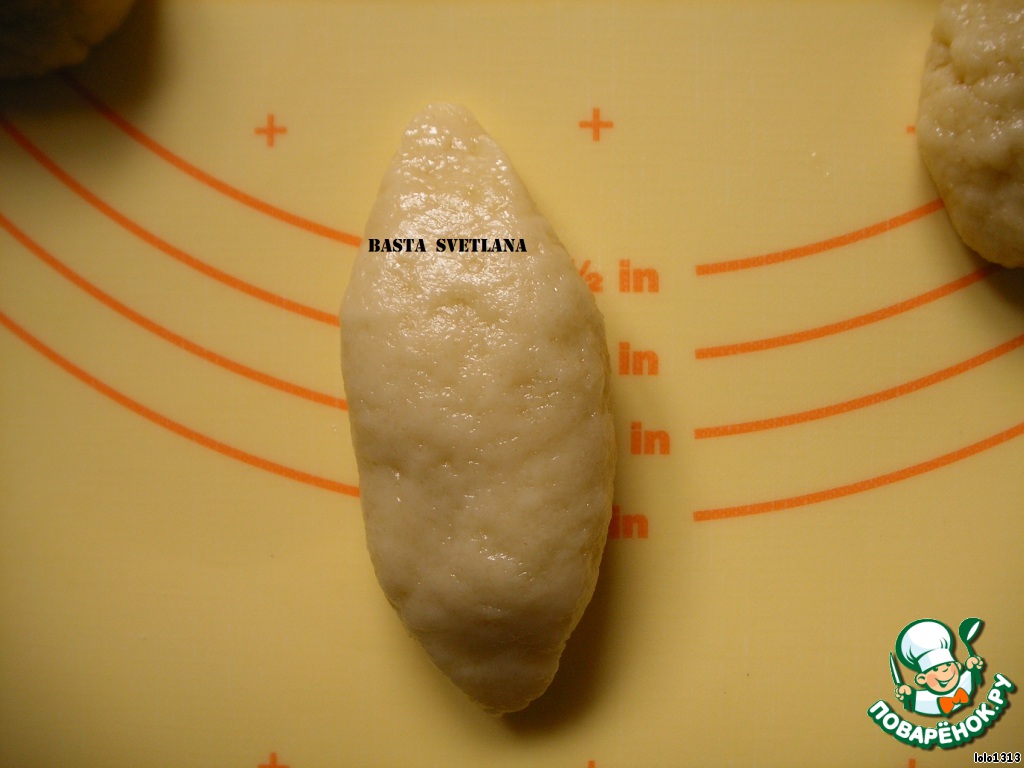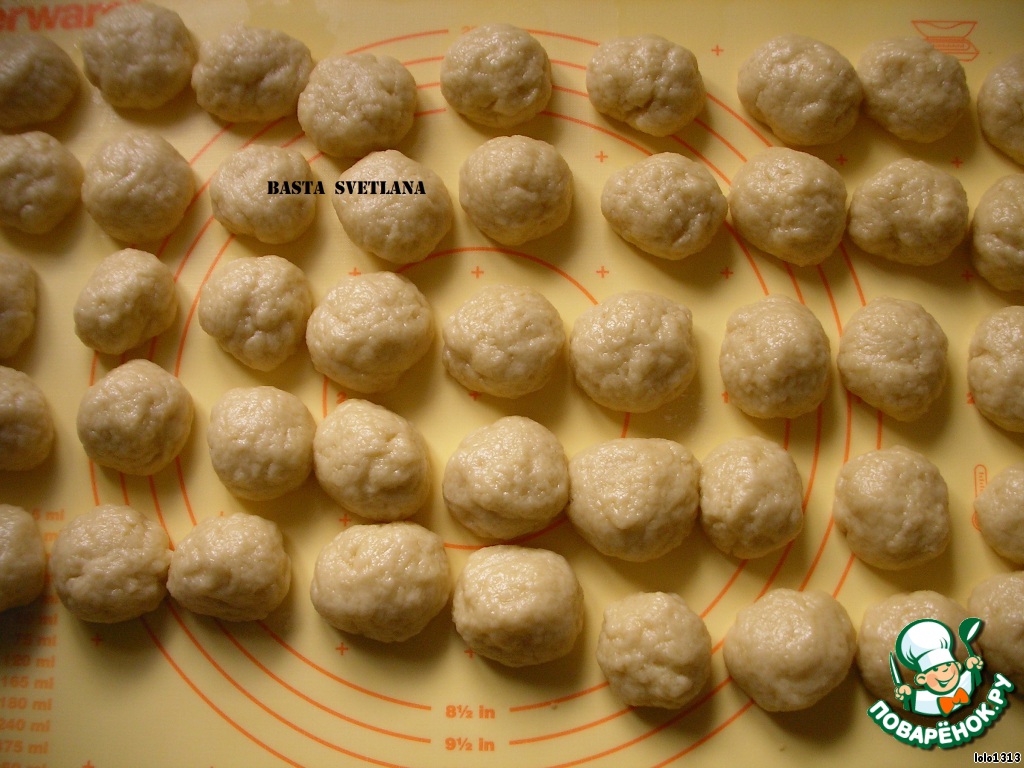 Тесто разделить на шарики размером чуть больше грецкого ореха.