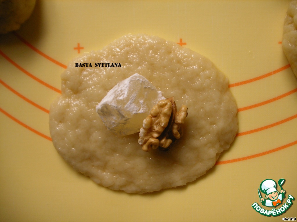 На каждую лепёшку положить четверть рахат-лукума и кусочек грецкого ореха.
