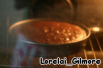 По прошествии 10-15 минут закрываем дверь в кухню на замок. Чтобы дверь не высадили обезумевшие от шоколадного запаха домочадцы. Подходим к духовке - видим, что пирог поднялся уже почти на 1/2. Это очень хорошо. Вот тут конкретно можно увидеть мое отражение в розовых флисовых штанишках. Сегодня сонный день.