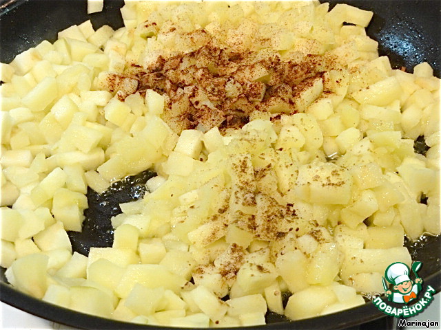 Яблоки немного потушить с кусочком сливочного масла. Добавить сахар, кардамон и корицу