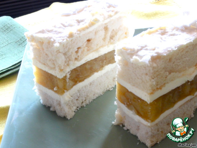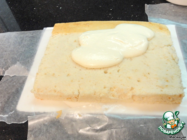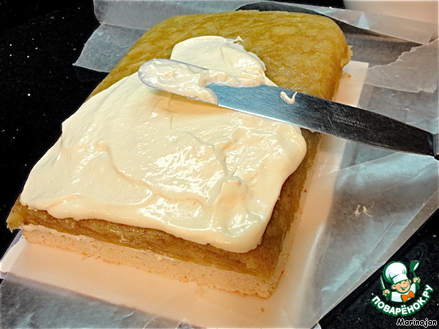 Осторожно перенести яблочное желе, смазать снова кремом.