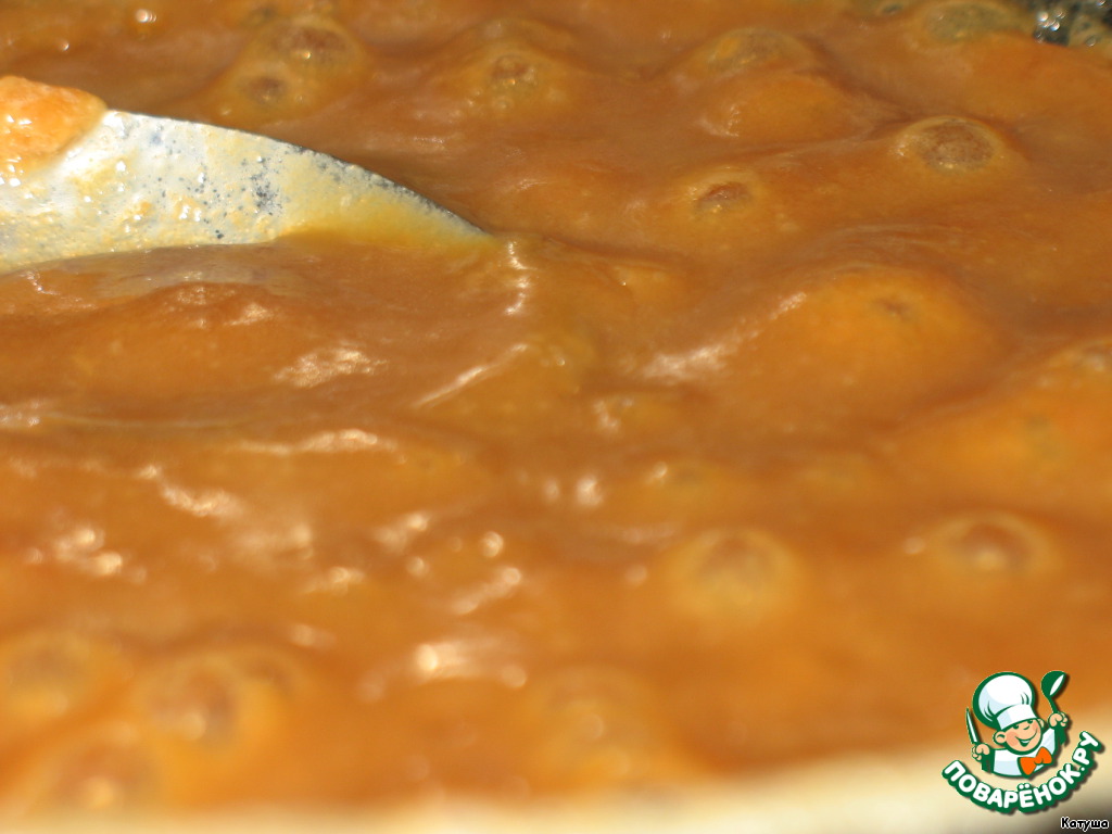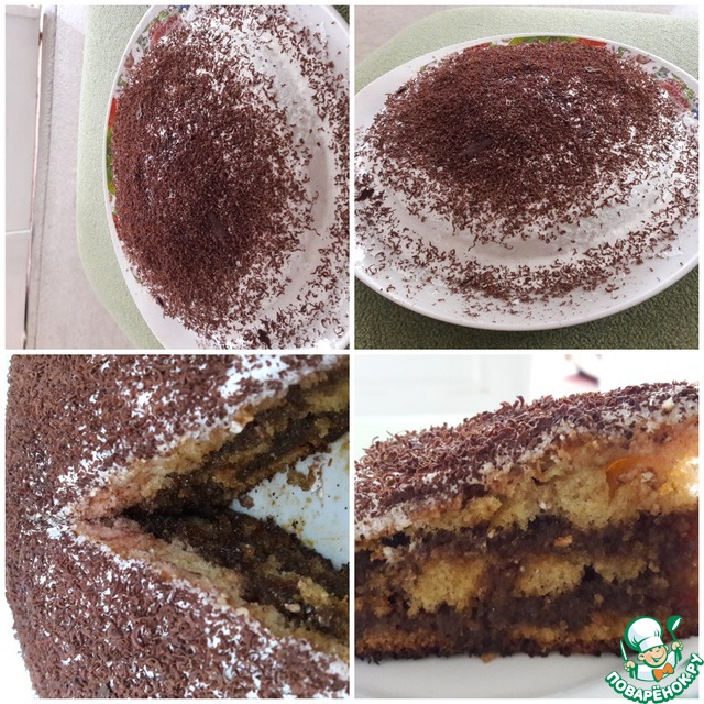 От себя. Пока запекался бисквит, сварила карамельную ириску промазала 2 коржа и полила сверху. Всё!