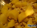• Картофель очистить, нарезать довольно крупными кубиками. Все сложить в кастрюлю.