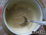 Тем временем разводим 1 ч. л. кофе в 2 ч. л. воды и добавляем в оставшуюся массу. Тщательно перемешиваем.
