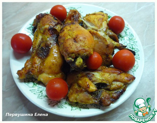 Промаринованную курицу выложить на противень, полить соусом, посыпать паприкой и поставить в духовку на 40-50 мин. Темпер. 200-210град.