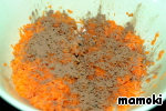 Морковку, лучшую самую сочную и сладкую, очистим хорошенько, ополоснем, обсушим да и натрем на меленькой терочке... Я все руками своими делаю, не люблю я эти комбайны кухонные, их мыть потом дольше