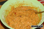 И... самый ответственный момент! Соединяем все три составляющие рецепта: муку, морковь и сметану с яйцом и сахаром. Ты не смотри, что тесто наше на кашу похоже, так оно и должно быть.
