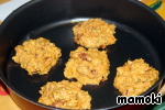 Духовку нагреваем до 200 градусов.Смазываем противень. Вот у меня маленький, от аэрогриля, а лучше сразу большой взять, потому что штук 16 лепешек разместить придется. А я буду порциями печь... Ну, и выкладываем чайной ложкой на противень лепешечки морковные, слегка приминаем их ложечкой.