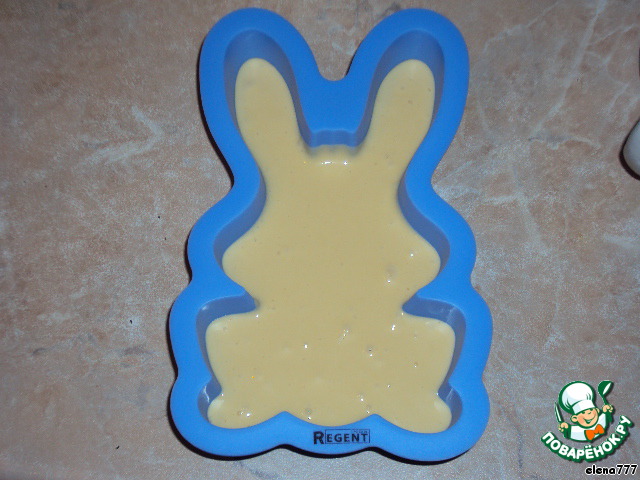 Если у вас нет такой формы, то не печальтесь, ведь можно испечь круглый бисквит и вырезать при помощи ножа или выемки пирожное в виде зайчика.