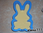 Растопить 100г белого шоколада на водяной бане и обмазать нашего новогоднего кролика.