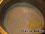В молоко добавить 100 г сахарной пудры, кокосовую стружку, масло.