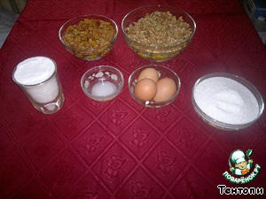 Орехи разломать на 8 частей, изюм помыть и дать стечь воде. На фото 3 яйца, так как я делала 1,5 порции торта.