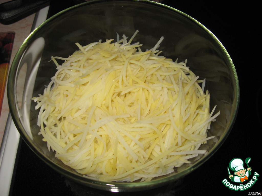 Теперь собираем наш салат.!!! Очень важна последовательность!!! Сначала кладем картофель.