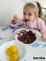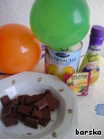 Остатки шоколада, естественно, бодренько подъедаются, а в это время мама открывает банку с консервированными персиками.