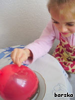 2. Другие шарики после холода я оставила на некоторое время при комнатной температуре, а потом проткнула иглой через скотч. Воздух выходил медленнее, но основа, увы, не сохранилась...