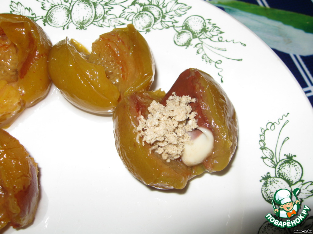3. Внутрь абрикосов вкладываем пасту и халву (сколько поместится).
