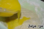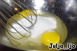 Тем временем взбиваем 2 яйца с солью и оставшимся сахаром. Добиваться большого объёма не нужно, я использовала венчик. Желательно, чтобы яйца не были холодными, то есть нужно их достать из холодильника заранее.