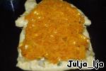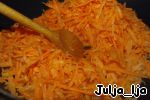 Для морковного слоя морковь натираем на средней тёрке, слегка обжариваем на растительном масле, солим и перчим - по вкусу.