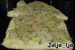 Выкладываем капустную начинку. Я всё делила на две части, так как у меня вышло два небольших пирога.