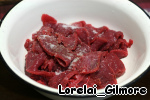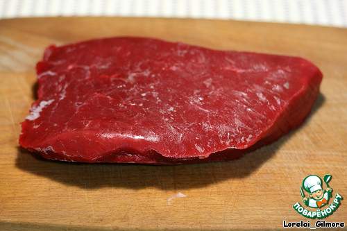 Пока варился бульон я подготовила остальное. Взяла кусок говяжьей вырезки. Положила в морозилку на час.