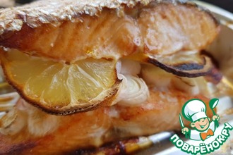 Выкладываем на блюдо порцию рыбы, поливаем соусом.