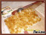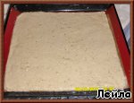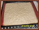 Выстелить противень пергаментом и распределить по нему тесто тонким слоем (влажными руками).