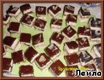 Растопить шоколад, каждый кубик обмакнуть слегка в шоколаде и украсить порезанным на пластинки оставшимся ананасом.