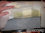 Накрываем следующим слоем лазаньи, с третьего пергамента.
