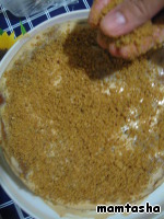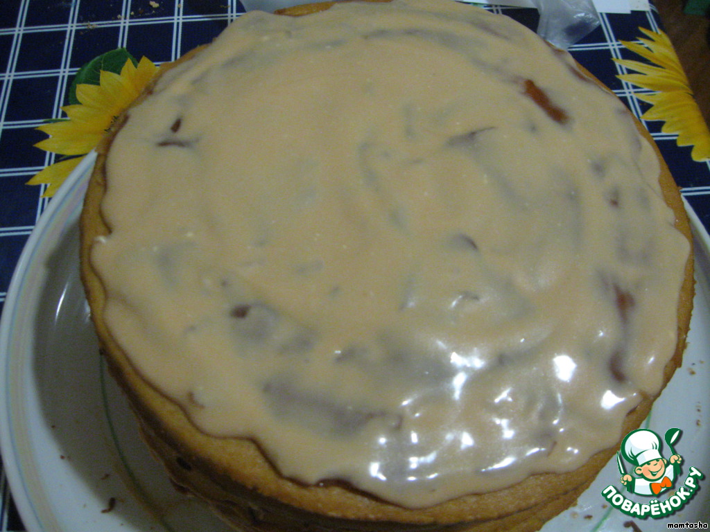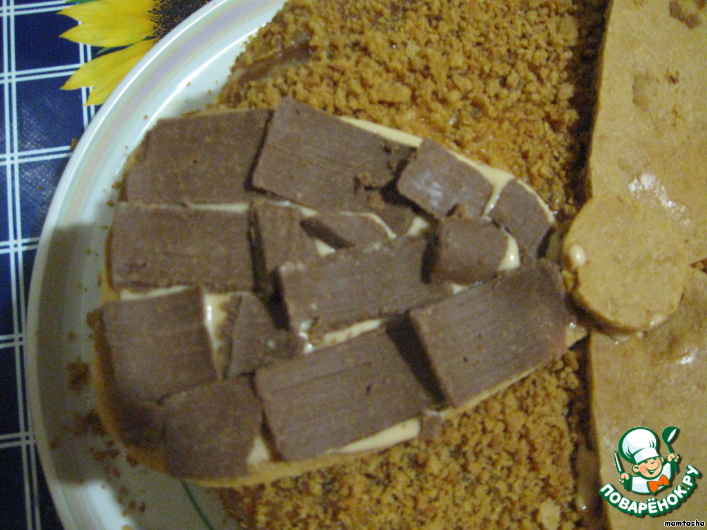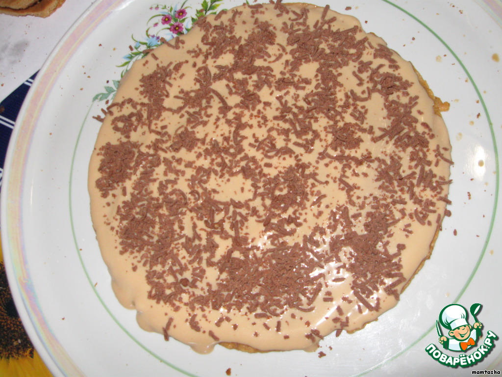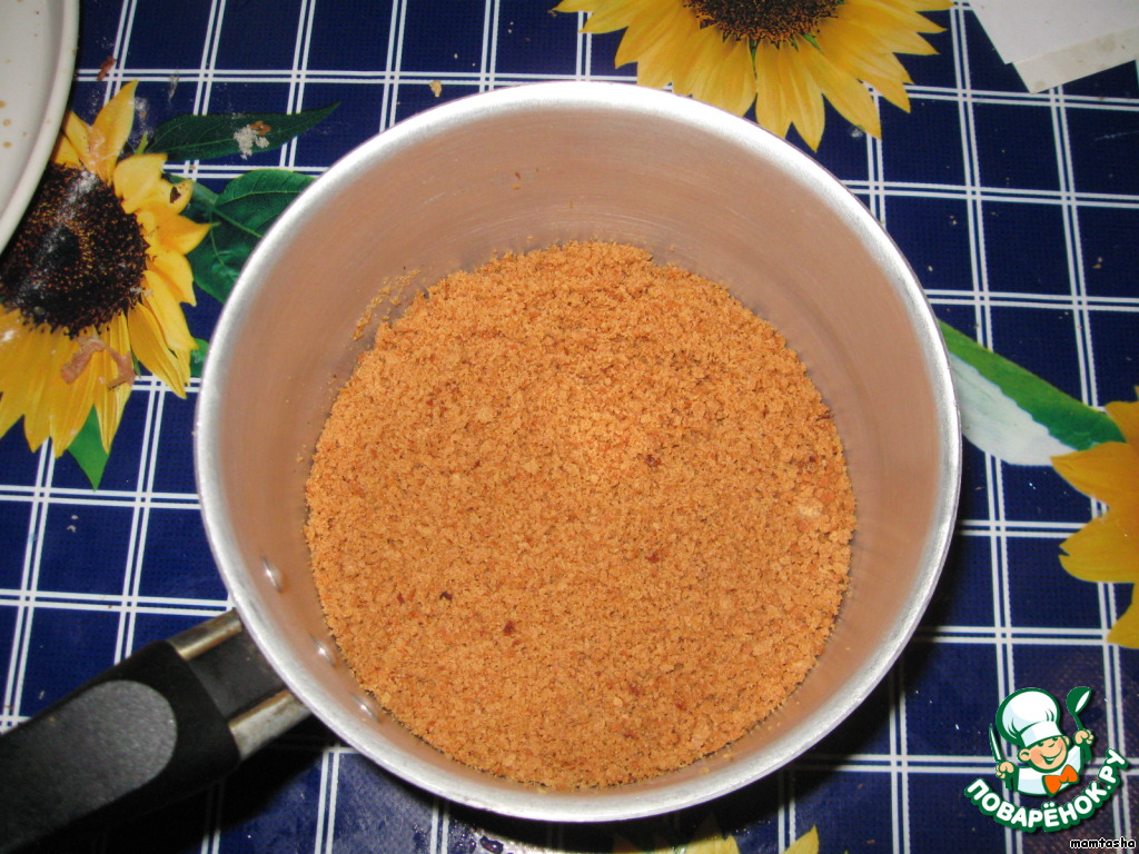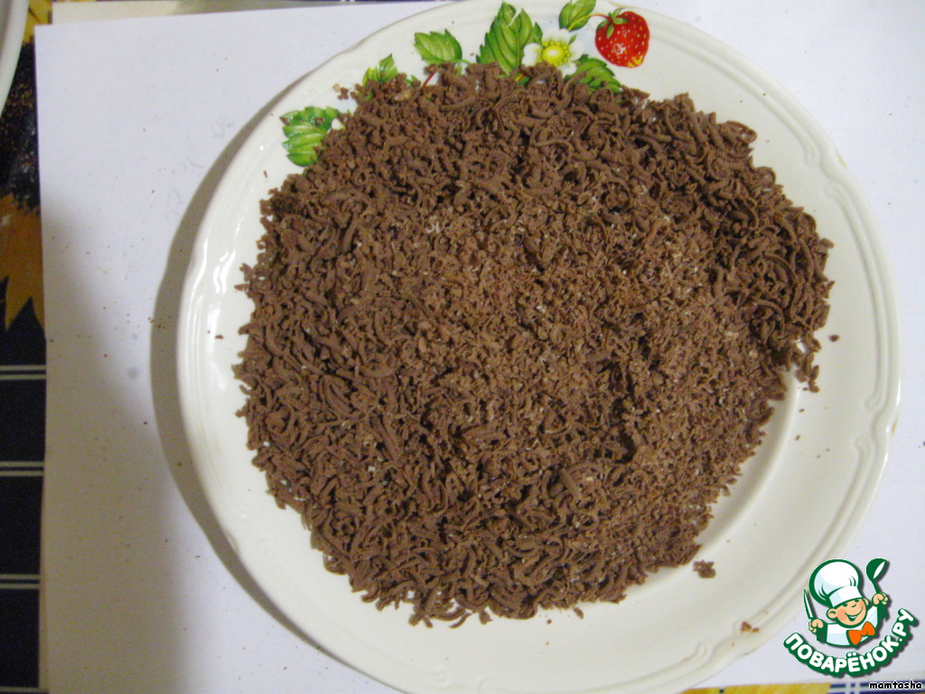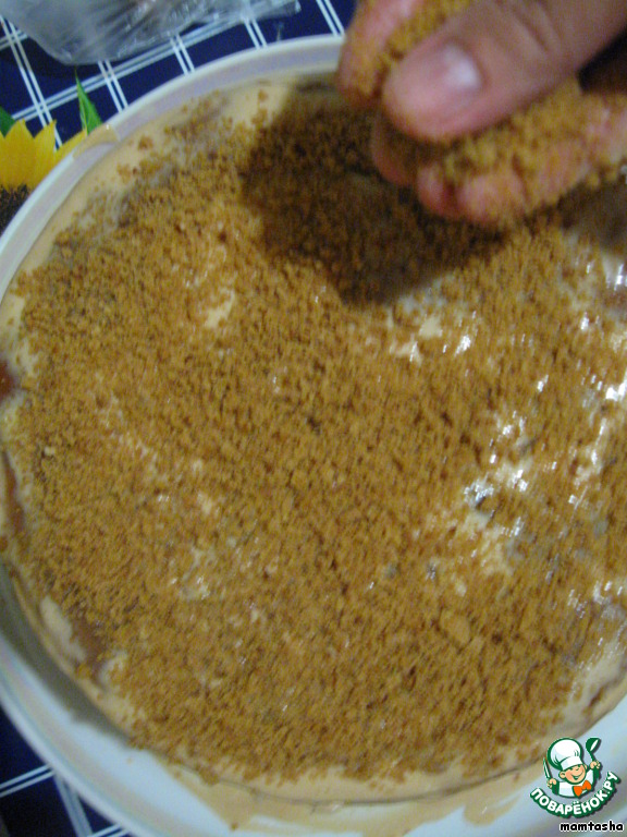15. Смазываем кремом весь торт сверху и с боков и посыпаем крошкой из перемолотых коржей