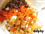 Затем вмешайте все ваши добавки, которые вы можете выбирать по своему вкусу, а также 1 ст. л. коньяка (по желанию). Например, вместо изюма можно использовать вяленую клюкву.