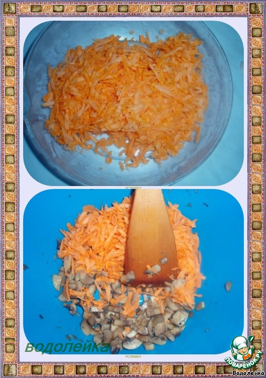 К майонезу добавить немного горчицы (я добавляла "на глаз" и не очень острую) и перемешать с морковкой и грибами.